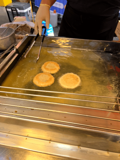 튀긴 호떡을 진열대 위에