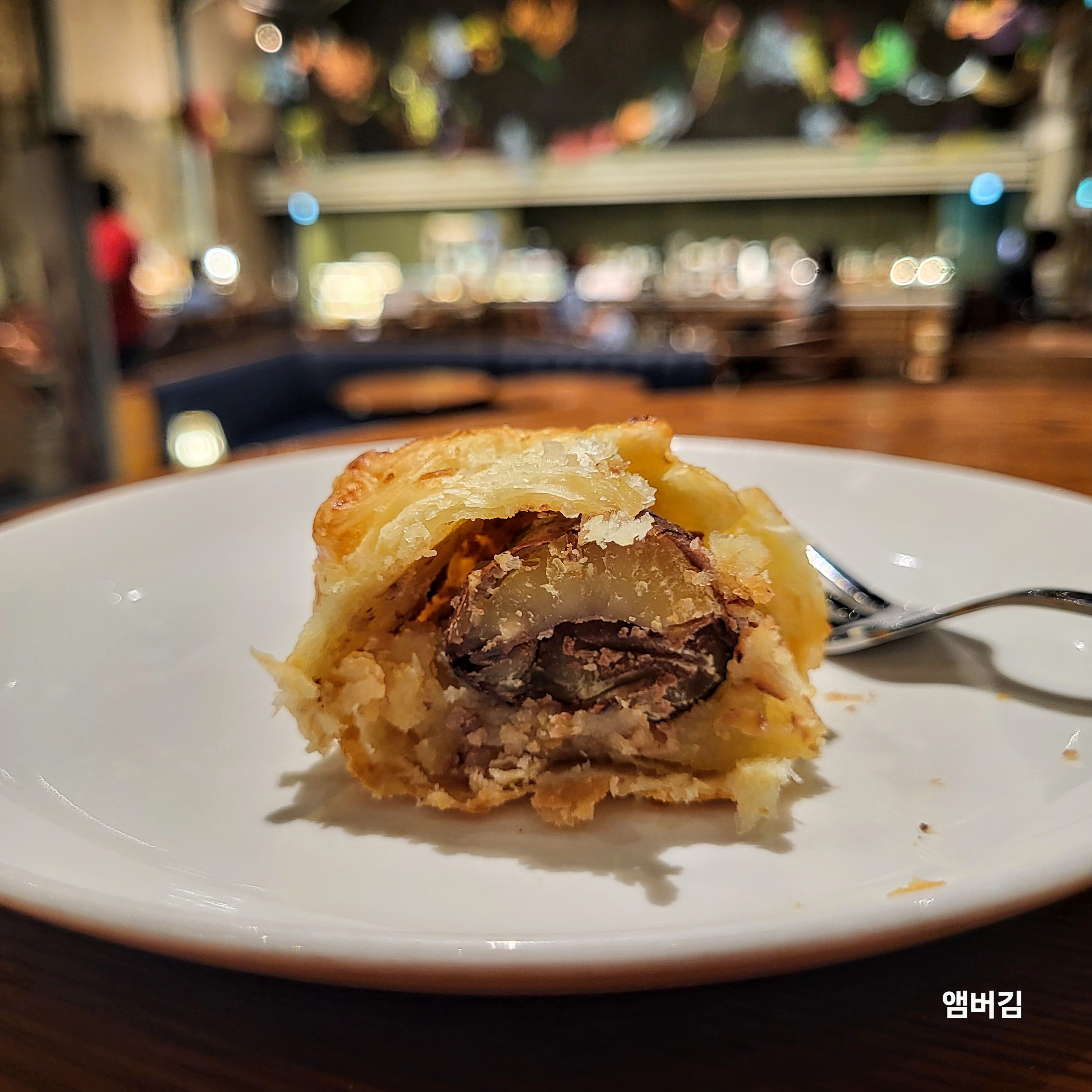 전체적으로 많이 달지 않으면서 버터의 풍미 가득한 패스츄리 속의 밤이 포슬하면서 촉촉하게 씹힌다.