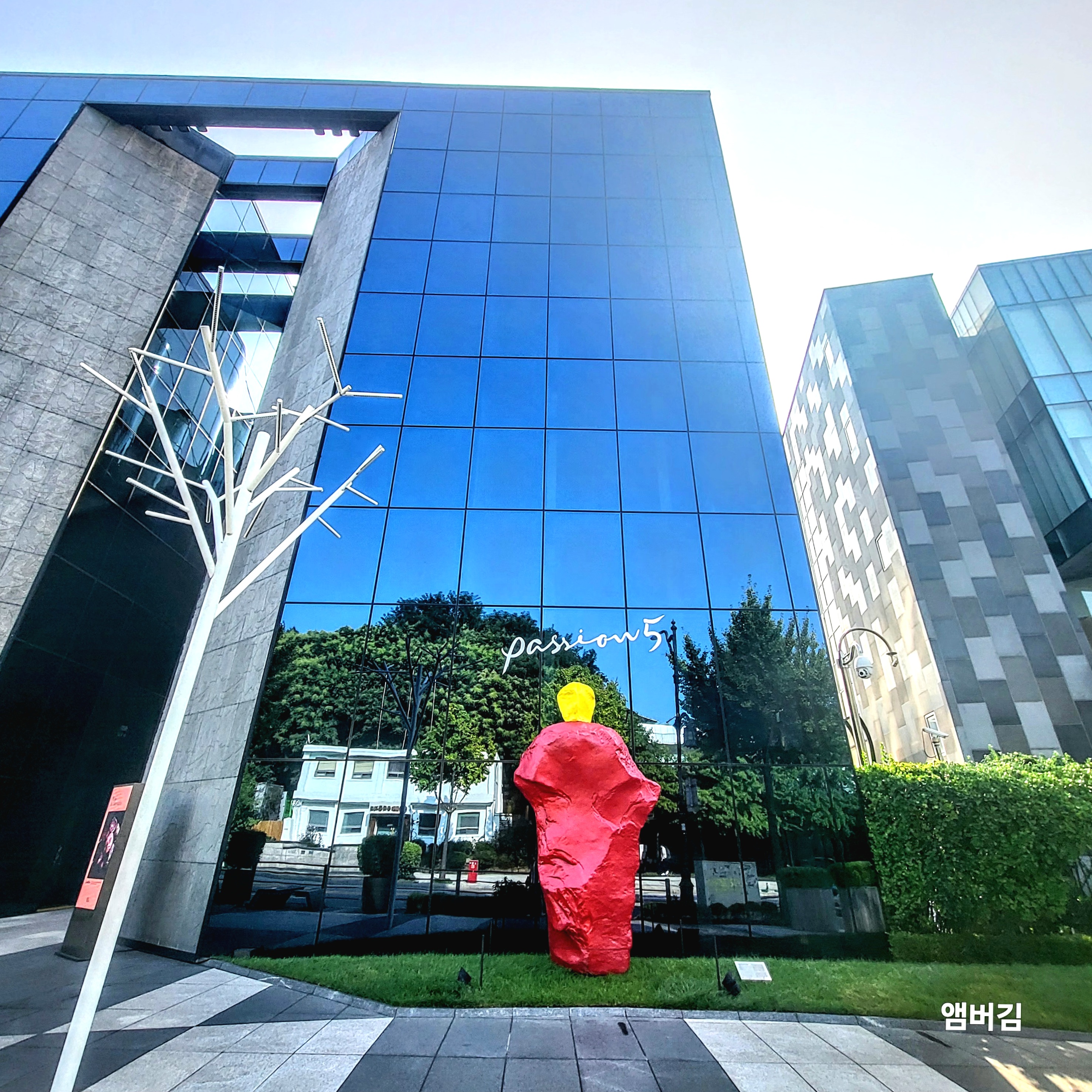 오른쪽에 빨간색의 조각상이 눈에 띈다.